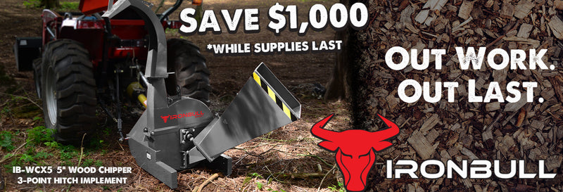 IRONBULL Canada4 Inch (IB-WC42G) Cat 1, 3-Point Hitch-equipped, gravity-fed IRONBULL Wood Chipper is a powerful beast! 540 RPM PTO and a 360° rotating hood with 1...